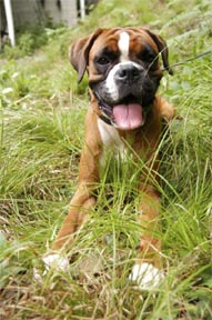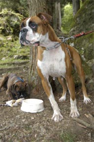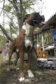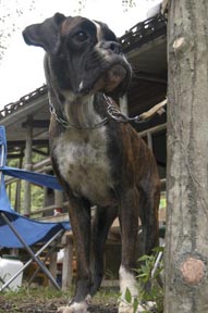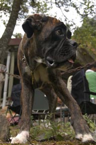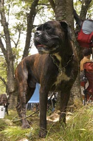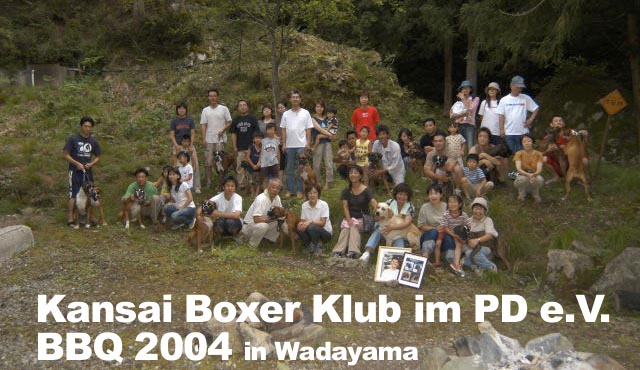 8月1日(日)、今年も関西ボクサークラブ恒例行事のバーベキュウが兵庫県和田山町にて開催されました。今年はなんと45名・22頭(ボクサーは18頭)が大集合!各審査会でもお馴染みの顔ぶれが並ぶ中、2003年冬からのクラブ内ベビーラッシュで誕生した仔犬たちも元気な顔を見せてくれました。BBQは今年で早5回目となり、回を重ねるごとに参加メンバーも増え賑やかな催しになっています。残念ながら本クラブでは去年の秋から今年の夏にかけ、所属ボクサーを相次いで亡くしました。この日参加したボクサーのうち約半分は彼らの子孫や同胎で、亡き親犬や同胎犬を偲びながら今後益々の所属犬の活躍とクラブの発展を願い、大自然の中で楽しい夏のひと時を過ごしました。