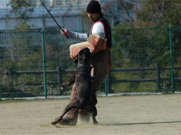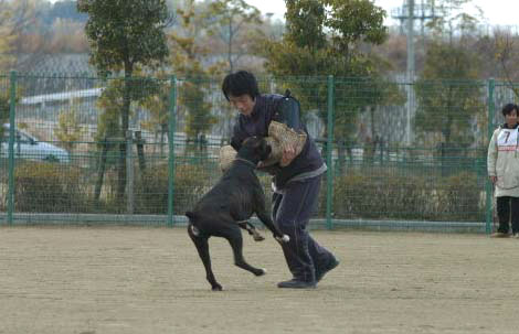 IPO目指して所有者自ら訓練している友鳴さんとアップライゼの防衛訓練。ヘルパーは、友鳴さんの先生でもある、山本トレーナー。