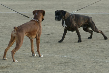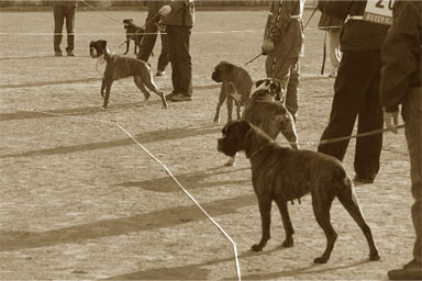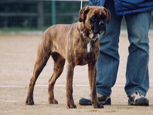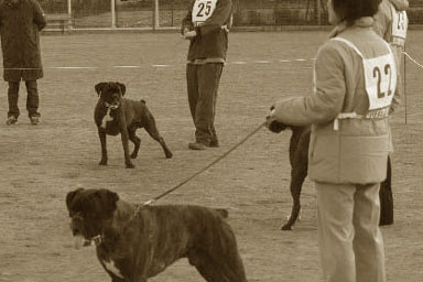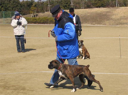 来日していたドイツのフリーゼンペルレ犬舎、ゲルト・ミュラー氏にハンドリング指導をしていただきました。なかなか思い通りに動かすことのできない自分のボクサーが、ミュラー氏がリードを持つやいなや、嘘のようにスムースに動く姿には感動すら覚えました。
