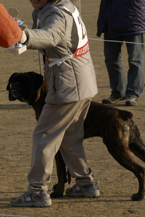 ![]() 全出陳犬の中で、コンディションが良かった8頭がピックアップされ、リンクに並ぶ。この日一番コンディションが良かったボクサーとして、アルスラーンが Der Beste Conditionpreisrに選出されました。 |