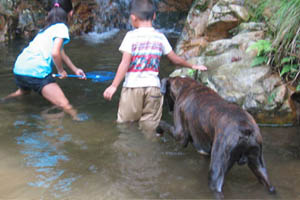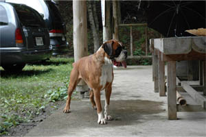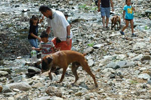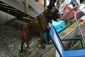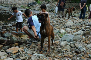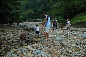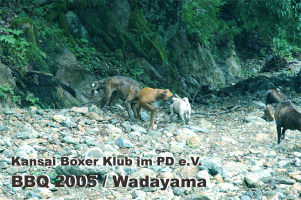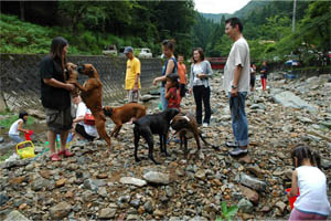 7月31日(日)、関西ボクサークラブ恒例行事のバーベキュウが兵庫県和田山町にて開催されました。今年のボクサー参加頭数は過去最多の20頭、関西ボクサークラブの所属犬が半分近く集まったということになります。山歩きに行くボクサー、川原で仲間と遊ぶボクサーとそれぞれが大自然を満喫しました。また私たち会員は美味しい但馬牛や新鮮な野菜、西村氏の本格パエリアに舌鼓を打ちながらボクサー談議に花を咲かせました。
