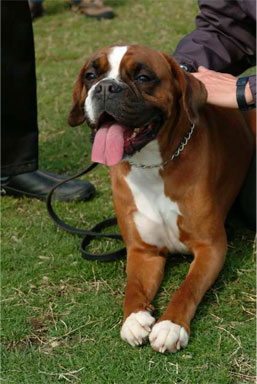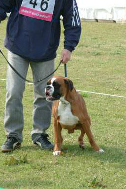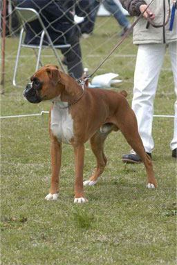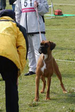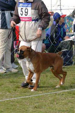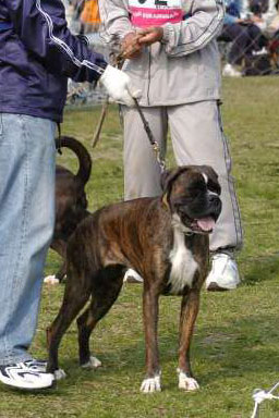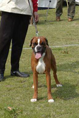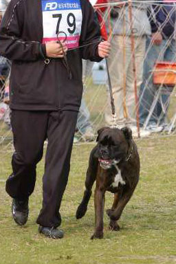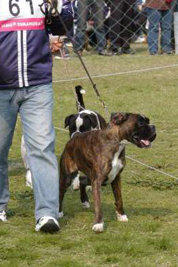 第59回 日本チャンピオン決定審査会(4月16日 東京都江戸川区・江戸川河川敷)に12頭の関西BK所属犬が出陳されました。例年、関西BKでは近畿内で集合し東京までレンタカーに乗り合わせるツアー組と、現地集合の単独組にわかれて日本CH決定審査会に参加していましたが、今年ツアー組は初めて空路を利用してみることにしました。フライト組(6頭)は前日の夕方、伊丹空港に集合しました。大きなバリケンを乗せたコンテナ6台が移動する様子は周囲の注目を集めたようで、搭乗待ちをしている人に度々覗かれるのでした。どのボクサーも初めてのフライトでしたが、伊丹⇔羽田の45分間をケロッとした顔で終え、単独組のボクサーたちも無事会場入りし、年に一度の大イベントを楽しみました。