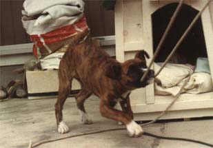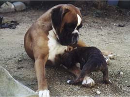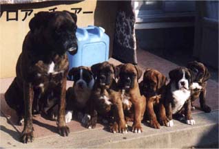 小学生の時に、念願の犬を飼いました。父方の祖父は大の動物好きで、養鶏業を営む傍ら、馬や牛、沢山の犬猫達がいたそうで、私の父もその中で育ちました。その中で父の印象に強く残っていたのが、高校時代に飼っていたボクサー。私が犬の飼育を懇願した時、「ボクサーなら飼っていいよ。」ということで無条件に決まりました。色々探したのですがなかなか見つからず、ようやく知り合いの伝手を辿って探し当てたのが出産間近のボクサー。しかし、生まれてきた仔犬達は雑種でした。とりあえず、仔犬の中で一番ボクサーに似ていた牝を連れて帰り、犬との生活が始まりました。牝にも関わらず、この雑種に名付けたのは「ボス」。しかし、ボスは生後10ヶ月で交通事故で無くなり、失意の中次の犬を探しました。たまたま、この間に見学に行ったJKCのDogshowでボクサーを連れていた方から名刺をいただいていたので連絡したところ、近々仔犬が生まれるとの話しをいただき、我が家にやってきたのが初めてのボクサーです。再度ボスと名付けられたこの牡が、私の人生を変えることになりました。1983年のことですから、もう20年になります。