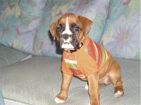 とともに太り始めた為に散歩を始めましたが、雨や帰りが遅くなり散歩の出来ない日が2〜3日続くとついつい散歩に出かけるのが嫌に成ってきます。折角体重のコントロールをしていましても1週間もサボると又振り出しと、こんな事を数年続けておりましたが、犬を飼えば嫌でも散歩しなければならないとの思いで、少し大きな犬を飼う事にしました。そこで、犬の本を買ってきて、先ず適度に散歩の必要な犬種、飼いやすい、毛抜けの少ない、人に従順な、無駄吠えしない、病気に強い等の条件で絞り込むと、ボクサー、フレンチブル、ボストンテリア、ワイマナラーのどれかということになり、それからネットでそれぞれの犬を吟味しておりましたら、近所の小林さんのところでボクサーが生れたとの情報をTHE