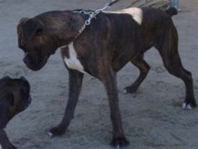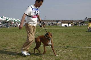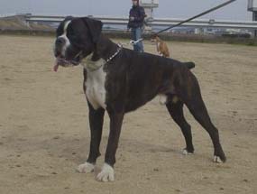 BOXERで知り、見せていただく事になりました。仔犬も可愛かったのですが、そこでお知り合いになったヴェストリッヒヘルト犬舎の栄山さん所有のクセルクセスとビーベルを見せていただき、その筋骨隆々とした体躯、どこか愛嬌のある顔立ちの中に堂々とした気品に一目惚れをしてしまいました。最初に飼いはじめたのが、クセルとローズの子供で、牡のブリンドルのバズでした。